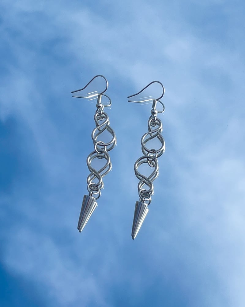 Sleek silver loops ending with pointed spike tips β¦ a bold yet minimalist take on early-2000s edge.