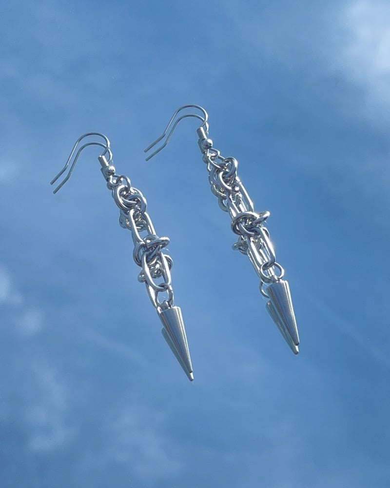 Silver barbed-wire inspired design ending with sharp spike tips β¦ compact, bold and rebellious β¦ pure 2000s industrial glam energy.