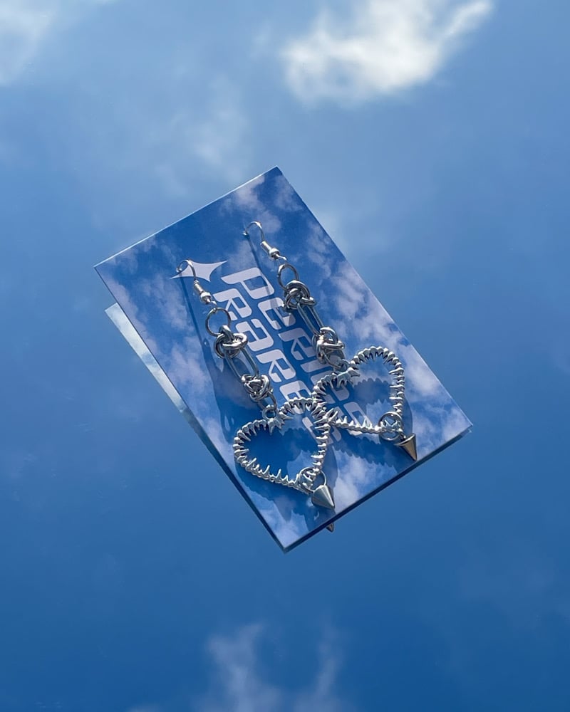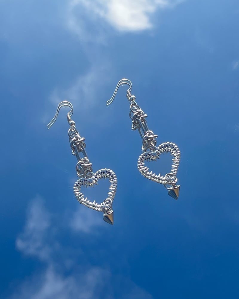 Intricately linked silver chains finished with a spiked heart charm β§ a bold symbol of love, intensity and pure Y2K attitude.